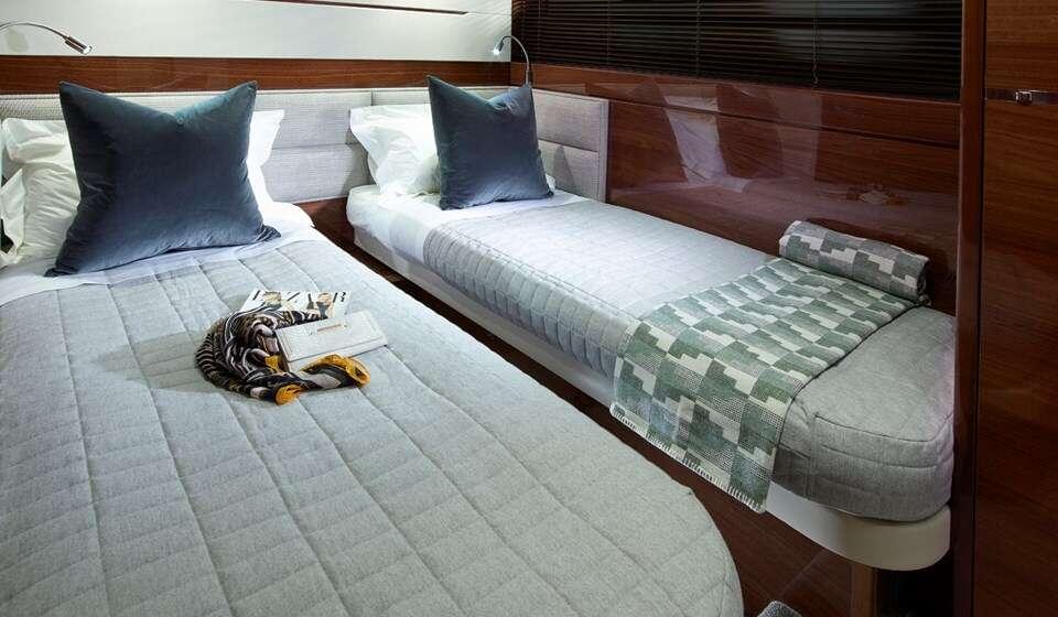 Princess F68 позволяет разместить на ночь 8 гостей в 4 роскошных каютах, команда из 2 человек размещается в 1 каютах.