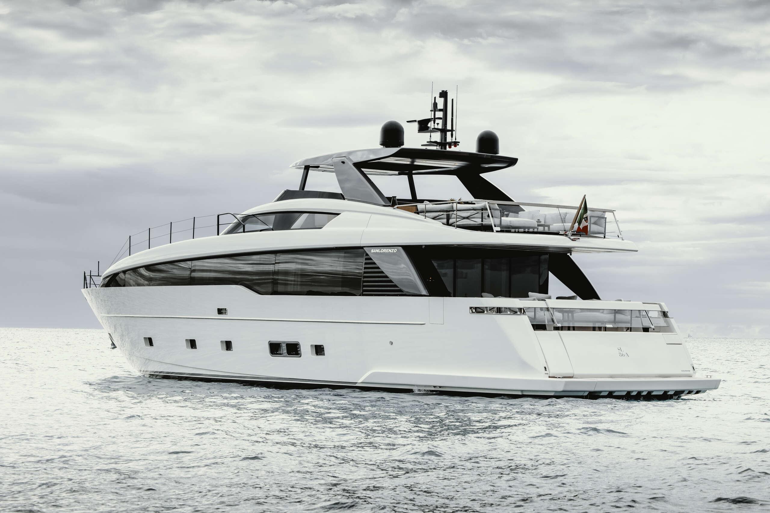 Моторная яхта с флайбриджем Sanlorenzo SL86 Asymmetric длиной 26.6 метров и шириной 6.35 метров будет построена в году на верфи Sanlorenzo, . Материал корпуса - Стеклопластик, надстройки - Стеклопластик, водоизмещение составляет 95 тонн, осадка- 1.96 метров. Интерьер Sanlorenzo SL86 Asymmetric был спроектирован Officina Italiana Design, наружный дизайн разработан Officina Italiana Design.