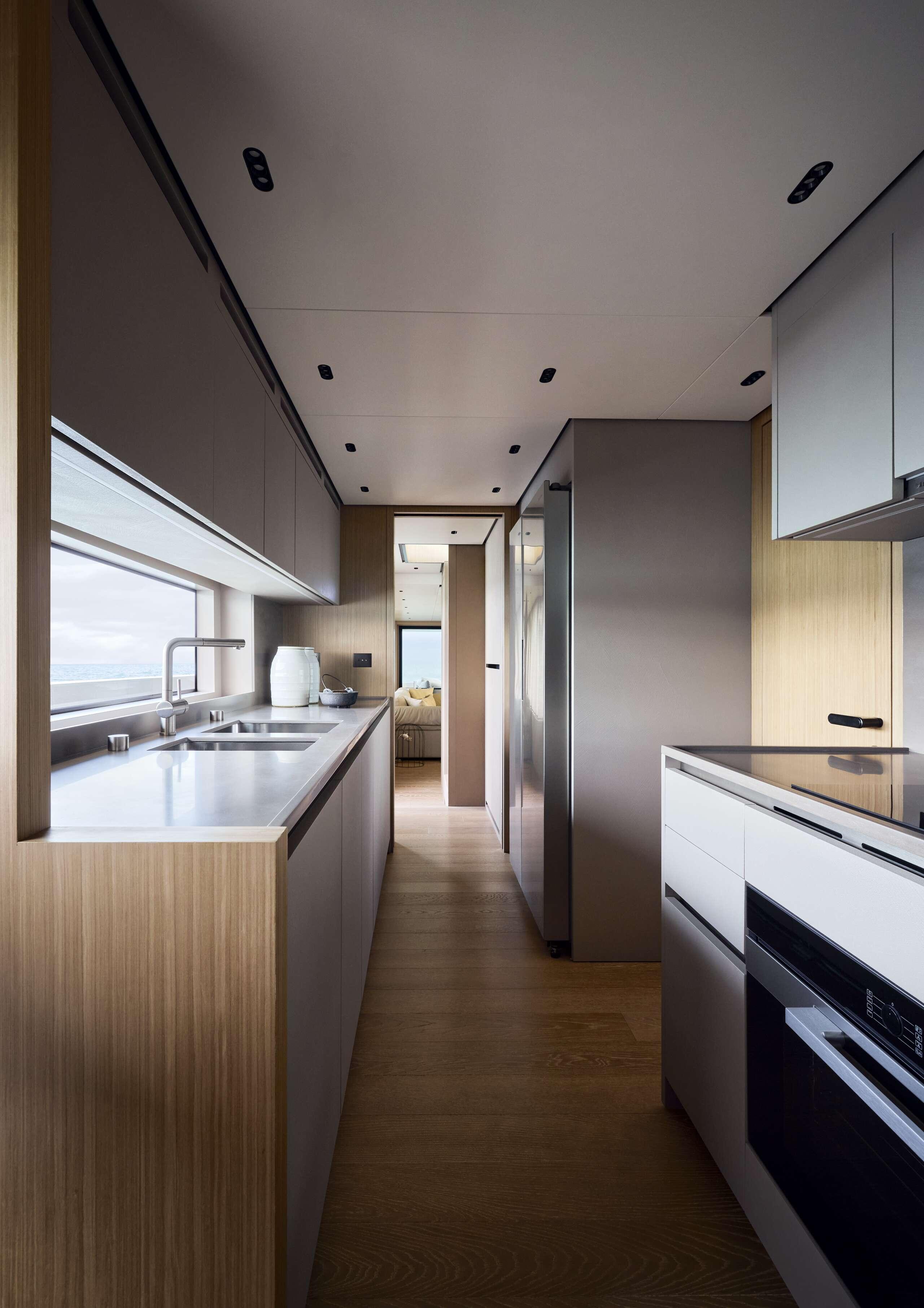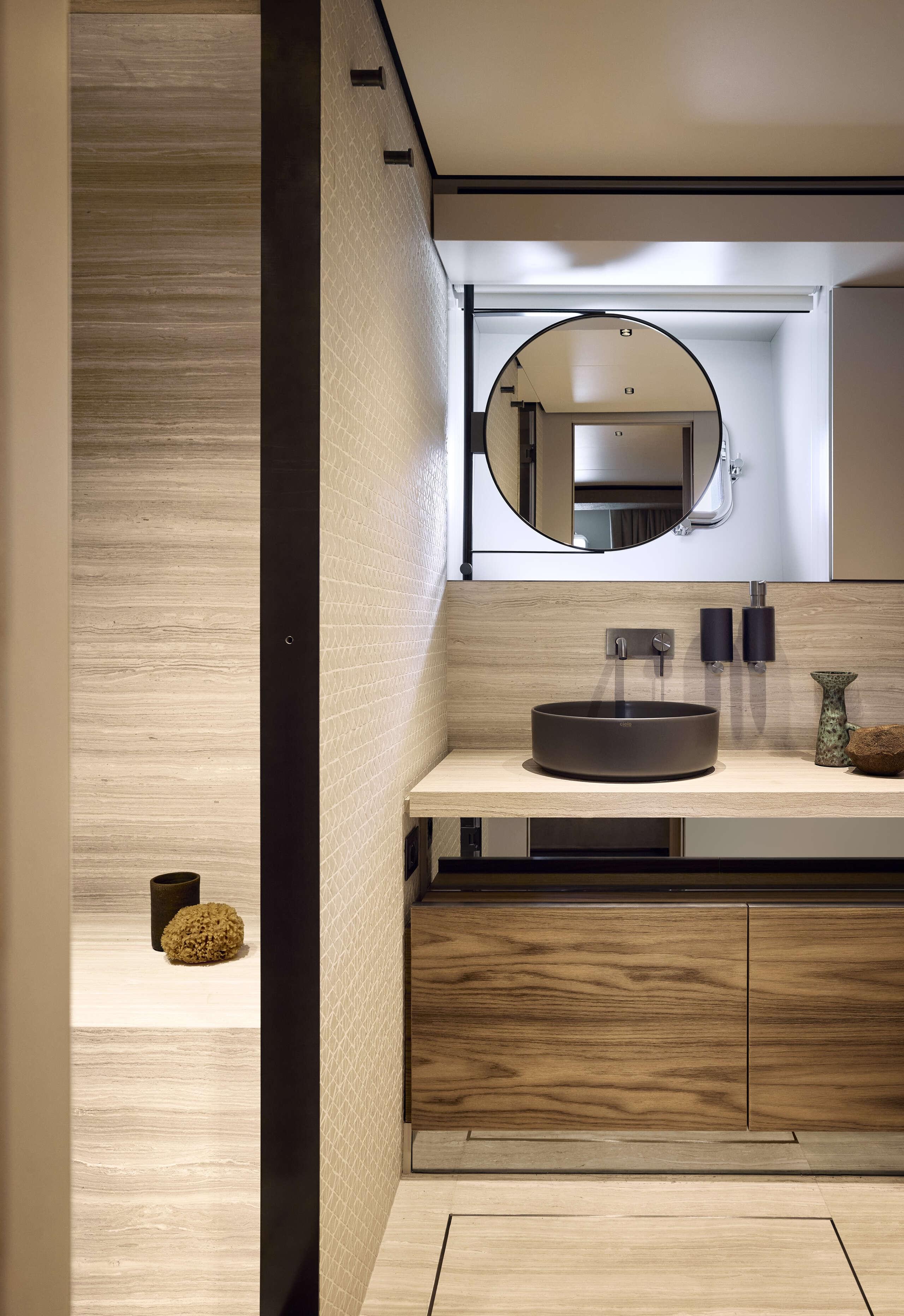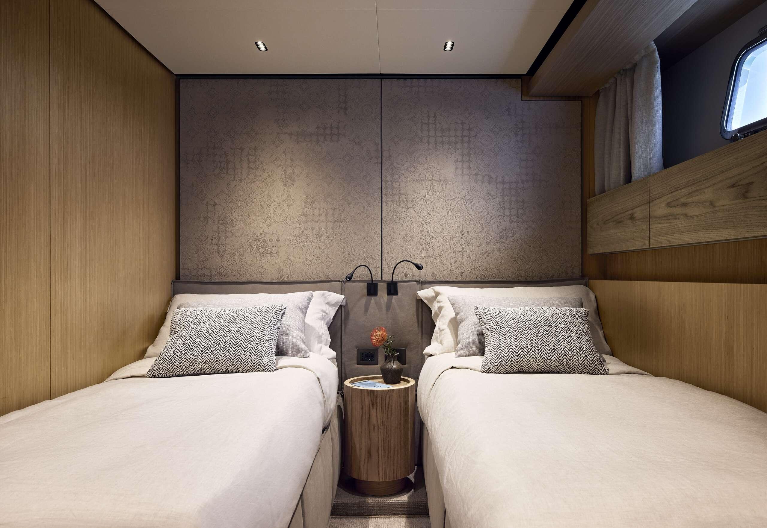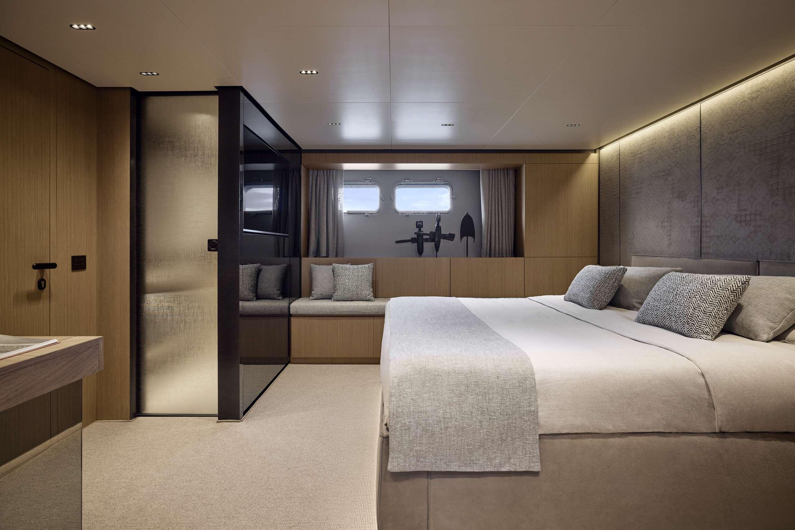 Sanlorenzo SL86 Asymmetric позволяет разместить на ночь 8 гостей в 4 роскошных каютах, команда из 4 человек размещается в 2 каютах.