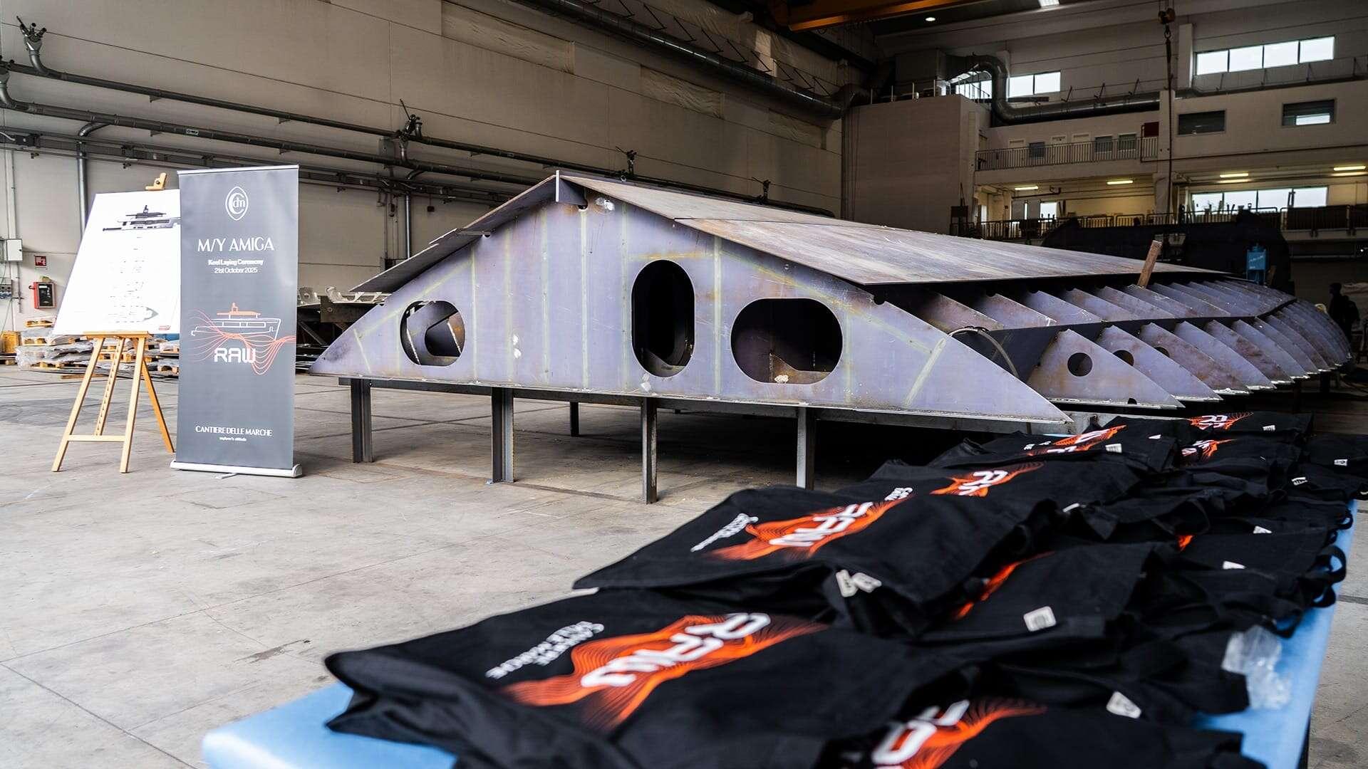 Cantiere delle Marche (CdM) has celebrated the keel laying of the first RAW 110 at its Ancona shipyard. This pivotal ceremony marks the birth of the vessel, as the keel forms the structural backbone upon which the entire yacht is built.