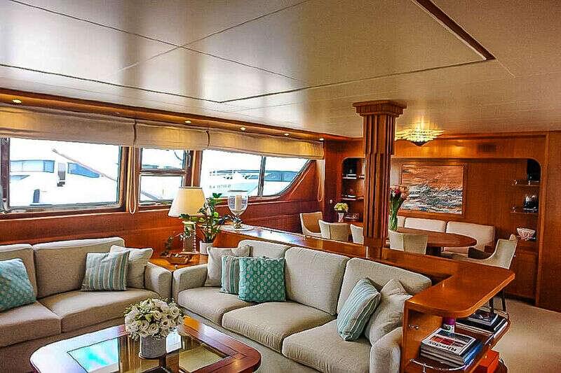The Motor Codecasa Custom Amna luxury interior sleeps up to 11 guests in staterooms. She is also capable of carrying up to 5 crew onboard to ensure a relaxed luxury yacht experience. Timeless styling, beautiful furnishings and sumptuous seating feature throughout to create an elegant and comfortable atmosphere.