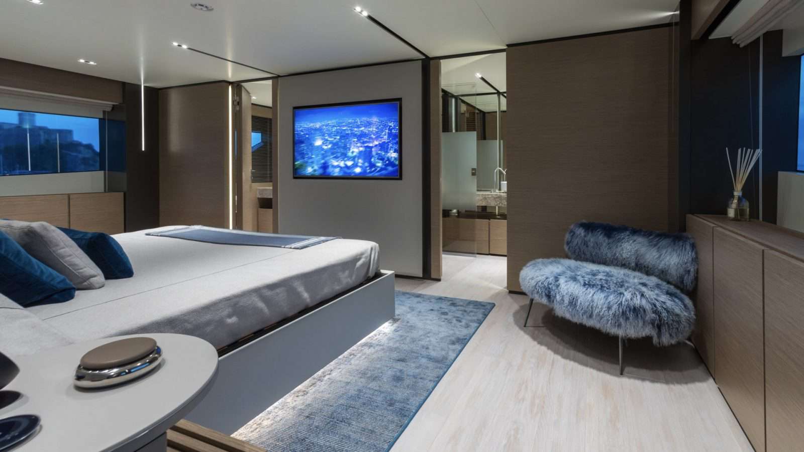 Absolute comfort is also guaranteed in terms of stabilisation when at anchor and when mooring, thanks to electro-hydraulic stabilising fins with zero speed mode, in addition to two Seakeeper gyroscopic stabilisers.