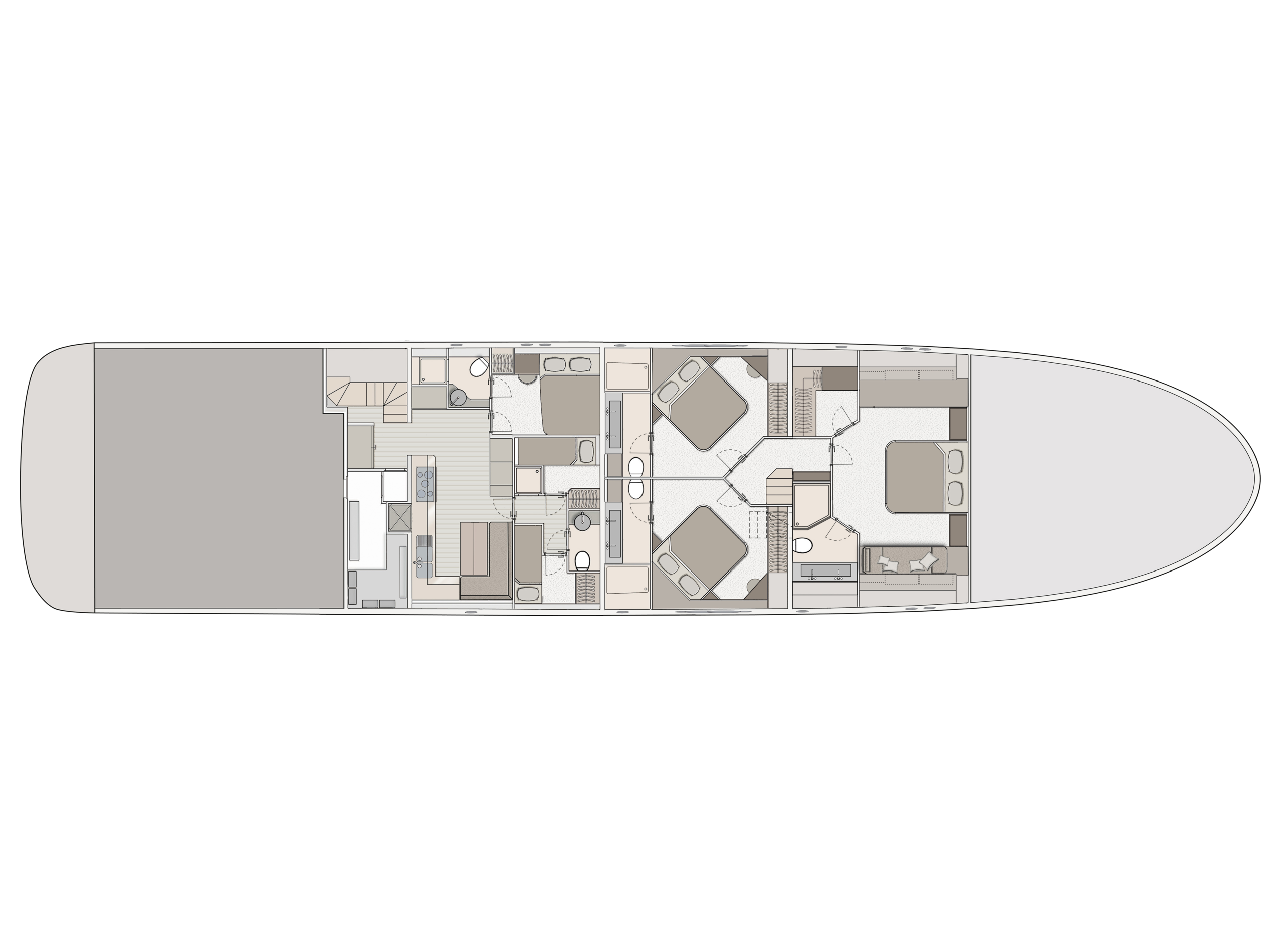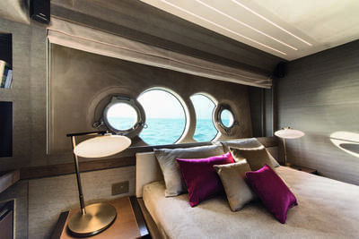 MCY 105 can accommodate up to 8 people in 4 elegant staterooms to be assisted by a total of 5 crew members with 2 cabins for crew members.