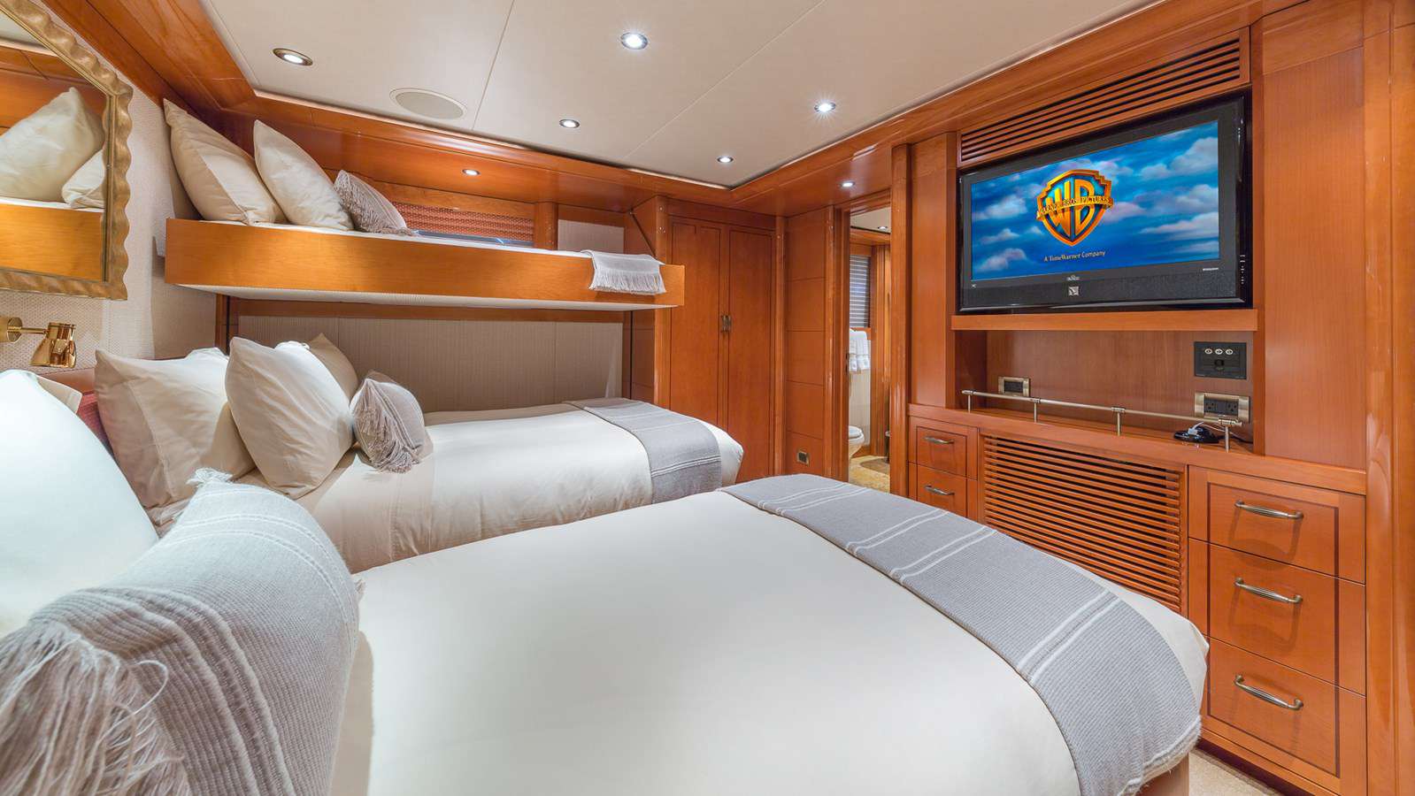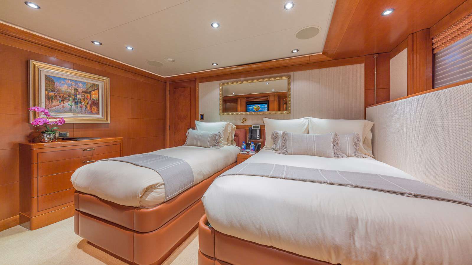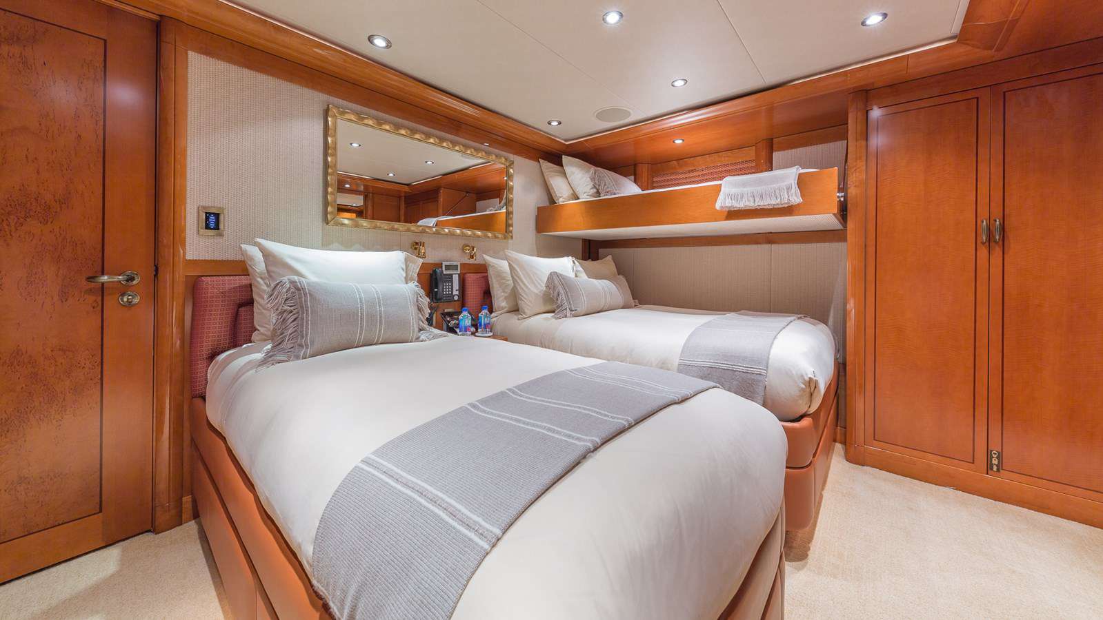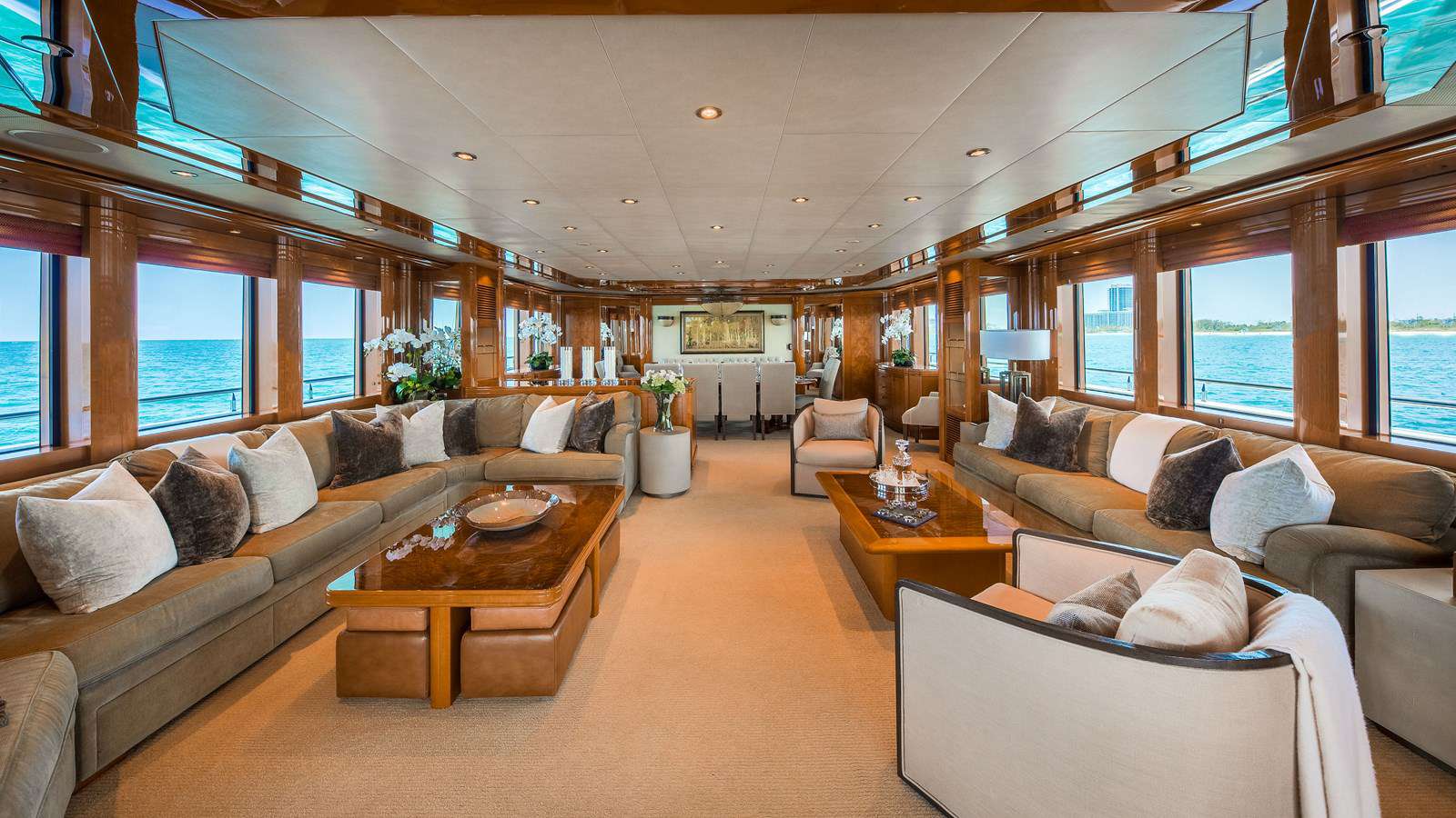 The Motor Trideck Westport 164 As You Wish luxury interior sleeps up to 12 guests in 6 staterooms. She is also capable of carrying up to 12 crew onboard to ensure a relaxed luxury yacht experience. Timeless styling, beautiful furnishings and sumptuous seating feature throughout to create an elegant and comfortable atmosphere.