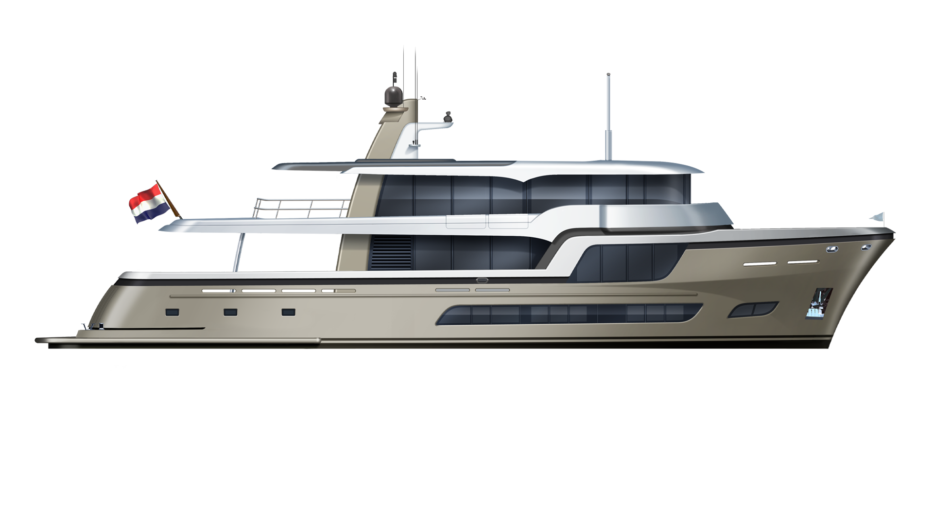 Wim van der Valk 34m Lady Lene features a Fast Displacement Aluminium hull and Aluminium superstructure. She was built to HULL, MACH ; Y class classification society rules.