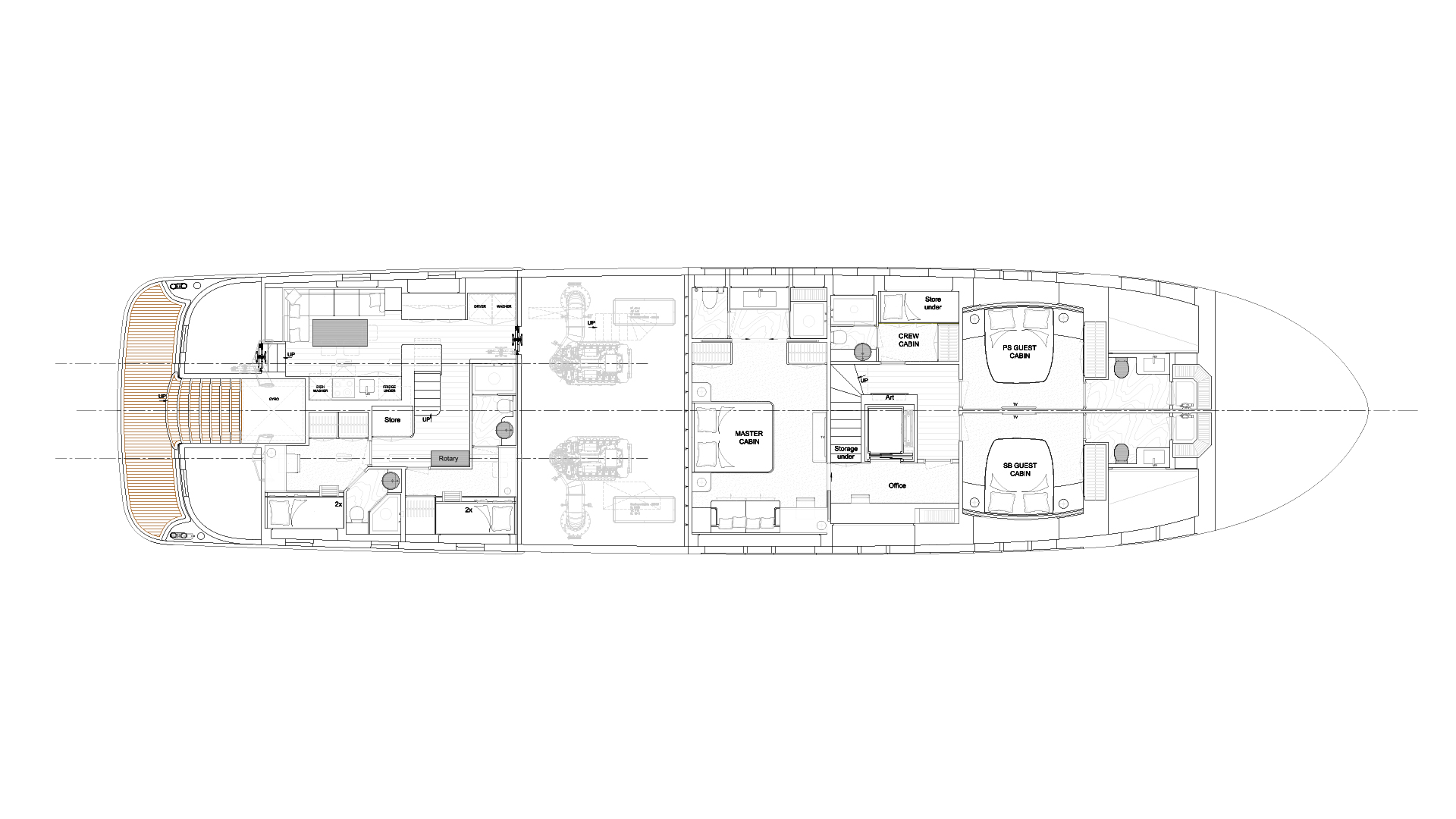 Wim van der Valk 34m Lady Lene is equipped with a 2 SeaKeeper gyro/Humphree electric fin stabilisation system which reduces roll motion effect and results in a smoother more enjoyable cruising experience underway.
